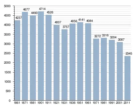 في سنة 1861 بلغ عدد السكان 4٬237 نسمة، وتطور العدد ليصل في سنة 2011 لـ 2٬345 نسمة.