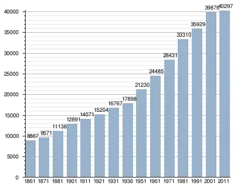في سنة 1861 بلغ عدد السكان 8٬867 نسمة، وتطور العدد ليصل في سنة 2011 لـ 40٬297 نسمة.