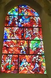 وتقع الكنيسة الوحيدة التي قام شاجال بعمل جميع النوافذ الموجودة فيها من الزجاج الملون في قرية صغيرة جدًا تعرف بقرية تودلي في مدينة كينت بإنجلترا. قام شاجال أيضًا بتصميم 12 نافذة من الزجاج الملون ذي الألوان الزاهية لمستشفى هداسا (الحداثة) عين كارم في القدس، وقد كانت كل نافذة من هذه النوافذ تصور قبيلة معينة من القبائل الاثنى عشر. وفي الولايات المتحدة الأمريكية، تحتوي كنيسة الاتحاد في بوكانتيكو هيلز على مجموعة من النوافذ التي صممها شاجال وتمثل إحياءً لذكرى الرسل والتي قام بوضعها فيها جون دي روكيفيلير الابن. http://www.hudsonvalley.org/content/view/17/47 /