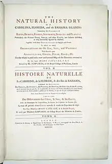- مارك كاتسبي (1743). التاريخ الطبيعي لكارولينا، وفلوريدا، و(الجزء الثاني). نسخة ممسوحة إلكترونية من غرفة الكتب النادرة.