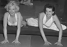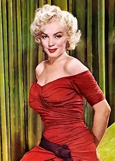 ماريلين مونرو (بالإنجليزية: Marilyn Monroe)، أو نورما جين مورتنصن[8] كما سُميت عند مولدها (نورما جين باكير وفقاً لشهادة التعميد)[9]، وُلدت في الأول من يونيو 1926م في لوس أنجيلوس، وماتت بها في 5 أغسطس 1962، وهي ممثلة ومغنية أمريكية. كانت ستتجه في الأصل إلى مهنة عرض الأزياء، إلى أن وجدها هاورد هيوز وأقنعها بأن توقع عقدها الأول مع شركة أفلام فوكس للقرن العشرين في أغسطس 1946. واستطاعت في بداية الخمسينيات أن تصبح نجمة هوليودية ورمزاً جنسياً. شملت نجاحاتها الكبرى أفلام «الرجال يفضلون الشقراوات»، «سنة الحكة السابعة»، وأيضاً «البعض يفضلونها ساخنة»، والذي رشحها لجائزة الغولدن غلوب لأفضل ممثلة كوميدية في عام 1960م. ورغم تلك الشهرة المهولة، فقد فشلت مونرو في حياتها الشخصية، ولم تحقق لها مهنتها الرضا النفسي. وقد أثارت وفاتها العديد من الاحتمالات والظنون (انتحار، جرعة زائدة من المهدئات، أو اغتيال سياسي)، ما ساهم في تقوية مركزها كرمز ثقافي.