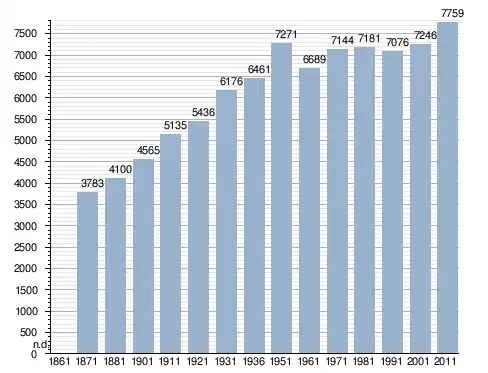 في سنة 1871 بلغ عدد السكان 3٬783 نسمة، وتطور العدد ليصل في سنة 2011 لـ 7٬759 نسمة.