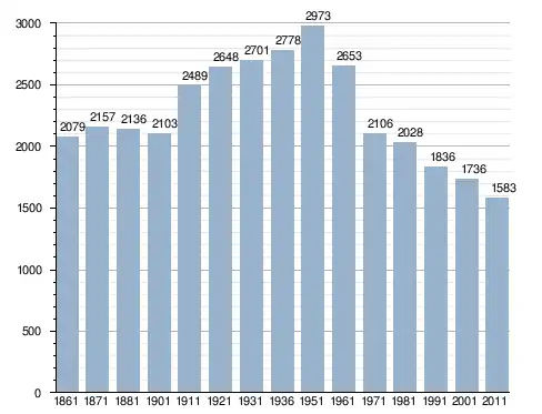في سنة 1861 بلغ عدد السكان 2٬079 نسمة، وتطور العدد ليصل في سنة 2011 لـ 1٬583 نسمة.