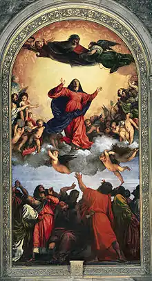 عقيدة انتقال العذراء مريم بالنفس والجسد إلى السماء تعتبر أيضًا من أهم العقائد المريمية، وهي بدورها مشتركة بين مختلف الطوائف المسيحية وإن بأشكال مختلفة. أصول هذا الاعتقاد يعود للقرون الأولى ويظهر في كتابات آباء الكنيسة،[2] والأساس الكتابي الغالب لها هو نشيد الأناشيد 2: 10.[3] ويخصص يوم 15 أغسطس لتذكار هذه المناسبة، يسبقه صوم مدته أربعة عشر يومًا؛[4] غير أن هذه العقيدة لم تبحث في مجمع، وفي الكنيسة الكاثوليكية قام البابا بيوس الثاني عشر بإعلانها عقيدة رسمية في 1 نوفمبر 1950،[5] بعد دراسة لاهوتية استمرت أربع سنوات،[2]