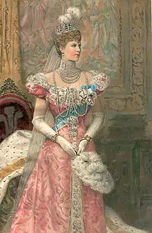 - Sus damas de honor fueron las princesas Maud y Victoria de Gales, Victoria Melita, Alejandra y Beatriz de Sajonia-Coburgo-Gotha, Elena Victoria de Schleswig-Holstein, Margarita y Patricia de Connaught y Strathearn, y Alicia y Victoria Eugenia de Battenberg