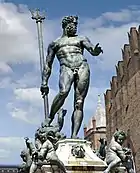 يعتمد شعار ترايدنت لشركة سيارات مازيراتي، الذي صممه ماريو مازيراتي، على نافورة نبتون في ساحة ماجوري في بولونيا . في عام 1920 ، استخدم أحد إخوة مازيراتي هذا الرمز في الشعار بناءً على اقتراح صديق العائلة ماركيز دييجو دي ستيرليش. كان يعتبر مناسبًا بشكل خاص لشركة السيارات الرياضية نظرًا لحقيقة أن Neptune يمثل القوة والحيوية ؛ بالإضافة إلى ذلك، يعد التمثال رمزًا مميزًا للمدينة الأصلية للشركة. [5]