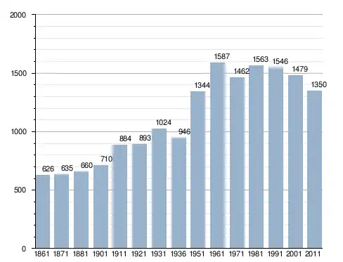 في سنة 1861 بلغ عدد السكان 626 نسمة، وتطور العدد ليصل في سنة 2011 لـ 1٬350 نسمة.