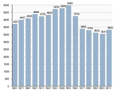 في سنة 1861 بلغ عدد السكان 4٬221 نسمة، وتطور العدد ليصل في سنة 2011 لـ 3٬822 نسمة.