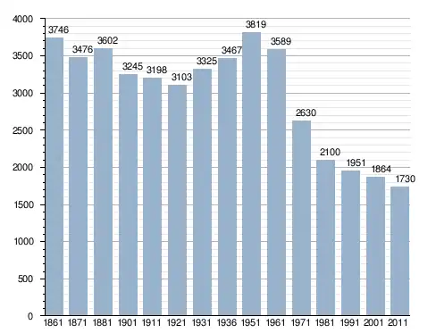 في سنة 1861 بلغ عدد السكان 3٬746 نسمة، وتطور العدد ليصل في سنة 2011 لـ 1٬730 نسمة.