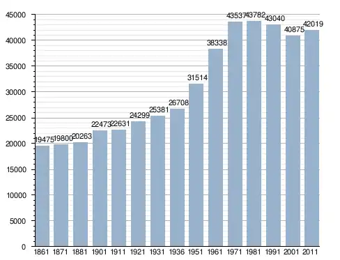 في سنة 1861 بلغ عدد السكان 19٬475 نسمة، وتطور العدد ليصل في سنة 2011 لـ 42٬019 نسمة.