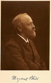 - Lunds domkyrkoförsamlings kyrkoarkiv, Död- och begravningsböcker, SE/LLA/13254/F I/9 (1902-1908), bildid: 00106277_00073 — تاريخ الاطلاع: 9 أبريل 2018 — الصفحة: 71 — إقتباس: 52,Febr,14,1,,Blix, Magnus Gustaf professor med d:r 54-1-19? ....(18)49,25/12....4861...Colitis ulcerativa