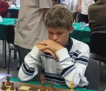 حقق نابغة الشطرنج كارلسن المركز الثاني في بطولة العالم لأقل من 12 سنة عام 2002، وبوقت قصير من بلوغه 13 سنة احتل المركز الأول في المجموعة ج من بطولة تاتا ستيل للشطرنج وحصل على لقب أستاذ كبير بعد عدة شهور لاحقا، فاز في سن الخامسة عشر ببطولة النرويج للشطرنج وفي سن السابعة عشر تعادل على المركز الأول في مجموعة النخبة ببطولة تاتا ستيل. تجاوز تصنيف 2800 في سن الثامنة عشر وبلغ الرقم واحد في تصنيف الاتحاد الدولي بسن التاسعة عشر، وهو ما جعله أصغر لاعب على الإطلاق يحقق تلك الانجازات.