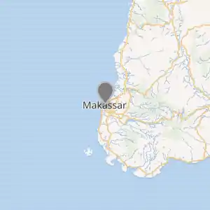 تقع مكاسار على الساحل الجنوبي الغربي للجزيرة، وتطل على مضيق ماكاسار، وبها ميناء.