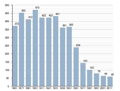 في سنة 1861 بلغ عدد السكان 372 نسمة، وتطور العدد ليصل في سنة 2011 لـ 60 نسمة.