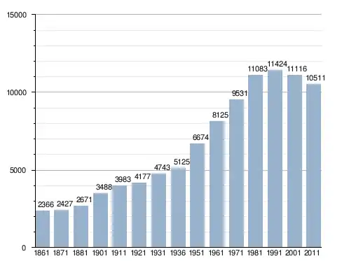 في سنة 1861 بلغ عدد السكان 2٬366 نسمة، وتطور العدد ليصل في سنة 2011 لـ 10٬511 نسمة.