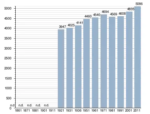 في سنة 1871 بلغ عدد السكان نسمة، وتطور العدد ليصل في سنة 2011 لـ 5٬086 نسمة.