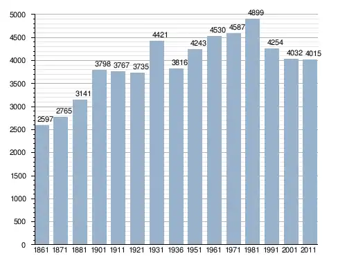 في سنة 1861 بلغ عدد السكان 2٬597 نسمة، وتطور العدد ليصل في سنة 2011 لـ 4٬015 نسمة.