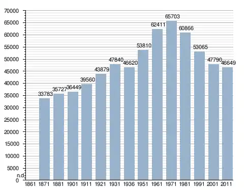 في سنة 1871 بلغ عدد السكان 33٬783 نسمة، وتطور العدد ليصل في سنة 2011 لـ 46٬649 نسمة.
