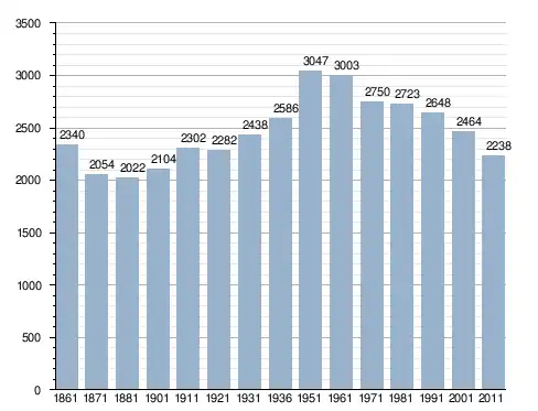 في سنة 1861 بلغ عدد السكان 2٬340 نسمة، وتطور العدد ليصل في سنة 2011 لـ 2٬238 نسمة.
