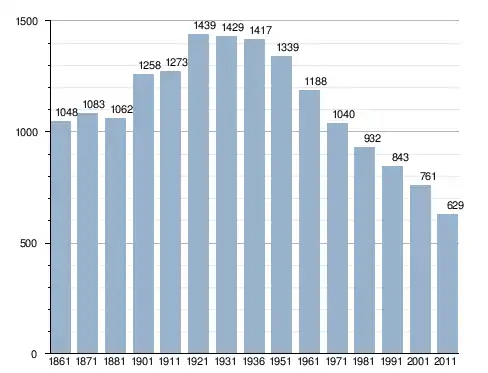 في سنة 1861 بلغ عدد السكان 1٬048 نسمة، وتطور العدد ليصل في سنة 2011 لـ 629 نسمة.