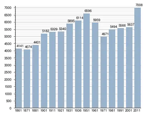 في سنة 1861 بلغ عدد السكان 4٬141 نسمة، وتطور العدد ليصل في سنة 2011 لـ 7٬008 نسمة.