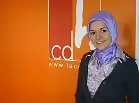 | أحجب شعري ولا أحجب فكري ولن يكون غطاء الرأس الإسلامي عائقا أمام نشاطي وعملي السياسي، ولا يجب أن يتحول الأمر إلى نقطة خلاف، وأنصح الذين ينتقدون الحجاب أن يذهبوا إلى طبيب عيون لتنقيتها من الإجحاف». |