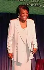 مارجريت آن جونسون وشهرتها مايا أنجيلو (بالإنجليزية: Maya Angelou، وتنطق /ˈmaɪ.ə ˈændʒəloʊ/)[22][23] (سانت لويس 4 أبريل 1928 - 28 مايو 2014 [24])، شاعرة وكاتبة أمريكية أصدرت سبع سير ذاتية وخمسة كتب في فن المقال والعديد من المجموعات الشعرية. تنسب إليها قائمة من المسرحيات والأفلام والبرامج التليفزيونية التي امتدت نحو أكثر من خمسين عاما. وحصلت أنجيلو على عشرات الجوائز ذلك بالإضافة إلى حصولها على أكثر من ثلاثين شهادة دكتوراة فخرية.[25] تشتهر بسلسلة التراجم الذاتية التي تنصب على مرحلة طفولتها وتجاربها الأُوَل في مرحلة المراهقة. وتناولت سيرتها الذاتية الأولى" أعرف لماذا يغرد الطائر الحبيس" [26] حياتها منذ لحظة الميلاد وحتى سن السابعة عشر. ومن الجدير بالذكر أن هذه السيرة منحتها اعترافًا وإطراءً عالميًا وشهرة واسعة.