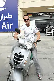 مايكل شوماخر (بالألمانية: Michael Schumacher) (مواليد 3 يناير 1969) هو سائق سيارات ألماني، أسطورة فورمولا 1 الذي فاز بالعديد من الألقاب،[3] ويعتبر من أعظم أبطال الفورمولا 1 وسباق السيارات بصورة عامة على مرً العصور. فلقد حصد سبعة ألقاب عالمية: الأول والثاني مع فريق بينيتون (1994 و1995) والخمسة المتتالية مع فريق فيراري (2000، 2001، 2002، 2003، 2004). حقق شوماخر العديد من الأرقام القياسيه في فورمولا 1 وبالإضافة للألقاب المتعددة حصد الجوائز الكبرى في فورمولا1 حيث حقق لقب أسرع المنطلقين، أسرع لفة وأسرع انطلاقة ولفة في نفس الحلبة،[4] وكان مايكل شوماخر أول ألماني يحصد لقب العالم للفورمولا 1،[5] وكان أيضا الأشهر في فورمولا1حتى عام 2006 وفقا لاستطلاع رأي قام به الاتحاد العالمي لسباق السيارات.[6]