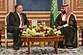 في فبراير 2017، سافر بومبيو إلى تركيا والسعودية. والتقى بالرئيس التركي رجب طيب أردوغان لمناقشة عدة قضايا تتعلق الأزمة السورية، ليتجه بعدها للسعودية وأثناء زيارته تلك كرم بومبيو ولي العهد آنذاك الأمير محمد بن نايف آل سعود بميدالية "جورج تينيت" من وكالة المخابرات المركزية، وكان هذا أول تأكيد على العلاقات بين السعودية والولايات المتحدة منذ تولي الرئيس دونالد ترامب منصبه في كانون الثاني / يناير 2017.[9][10][11][12]