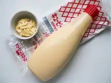 Kewpie mayonnaiseبالإضافة إلى 4% خل، 1% ملح و 1% سكر[9]
