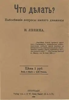 ![]() غلاف الطبعة الأولى من كتاب لينين ما العمل؟. 1902 | |