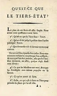 يذهب سياس في المنشور إلى القول بأن الطبقة الثالثة (عامة الشعب الفرنسي) شكلت أمةً بحد ذاتها وليست بحاجة إلى ما وصفه بـ"العبء المميت" للطبقتين الأخريتين ألا وهما الطبقة الأولى (رجال الدين) والثانية (الأرستقراطية). صرّح سياس أن الشعب يريد ممثلين حقيقيين في مجلس الطبقات، وتمثيل متساوٍ مع الطبقتين الأخريتين اللتان تم جمعهما معاً، واحتساب الأصوات بحسب عدد الأشخاص وليس بالطبقات. غدا لهذه الأفكار تأثير هائل على مجريات الثورة الفرنسية.