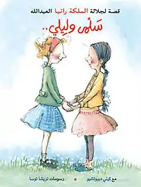 أطلقت الملكة رانيا العبد الله في مكتبة مركز زها الثقافي في عمّان الطبعة العربية من كتابها والذي حمل اسماً جديداً هو «سلمى وليلى»، وقرأت جزءًا منه لمجموعة من الأطفال تتراوح أعمارهم بين 6-7 سنوات. كما قدمت نسخة من كتابها كهدية للأطفال. ويحكي الكتاب قصة حقيقية عاشتها الملكة رانيا عندما كانت في سن الخامسة، حين أدركت -وهي طفلة صغيرة- للمرة الأولى وجود اختلافات ثقافية بين الناس. وهي تريد من هذا الكتاب أن يكون رسالة لجميع أطفال العالم لتقبّل غيرهم من الثقافات المختلفة بالرغم من اختلافاتهم مهما كبرت أو صغرت.[9] وكانت الملكة رانيا قد استثمرت جانبًا من تواجدها في الولايات المتحدة الأميركية للتعريف بالكتاب الذي صدر عن مؤسسة ديزني العالمية. كما قامت بقراءة أجزاء منه لأطفال من إحدى مدارس شيكاغو ومن مدرسة الأمم المتحدة الدولية الذين تبادلت الحديث معهم حول بعض المفاهيم التي ركز عليها الكتاب في الاختلاف والتنوع وفتح آفاق التعرف على الآخر وتقبّله.[10]