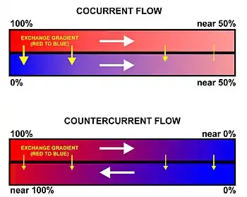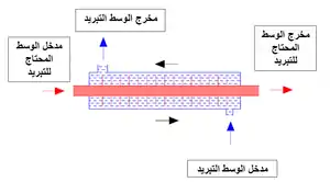 - تدفق عكس التيار: تدفقات متوازية من السوائل ولكن في اتجاهات عكسية