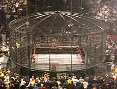مبنى الإقصاء عباراة عن قفص كبير دائري (أشبه بالمبنى) يحيط الحلبة من كل الجهات متكونًا من السلاسل والقبضان الحديدية، وفي كل زاوية حجرة أو كبينة (4 غرف) يبقى فيها المصارعون حتى يأتي دورهم لدخول المباراة، وتشمل المباراة على 6 مصارعين يبدأ 2 اللعب مباشرة ويدخل الأربعة الباقون بترتيب عشوائي بين فترات محددة (3، 4، أو 5 دقائق)، ويتم إقصاء المصارعون بالتثبيت أو الإخضاع، آخر مصارع يضل في المباراة يعلن الفائز.