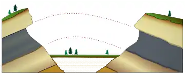 ينص مبدأ الاستمرارية الجانبية على أن الطبقات الرسوبية تمتد جانبيًا أولاً في جميع الجهات؛ وبعبارة أخرى، مستمرة جانبيًا.[1] ونتيجة لذلك، فإن الصخور المتشابهة ولكنها الآن مفصولة فيما بينها بـ واد أو غيره من خصائص التعرية، من الممكن افتراض أنها في الأصل مستمرة.