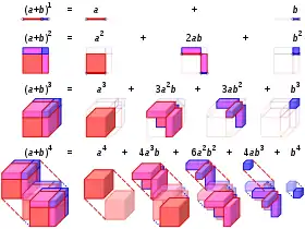 ![]() تصور نشر ذات الحدين حتى القوة الرابعة. | |