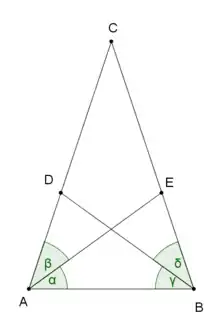 يمكن الإثبات باستخدام نظرية ستيوارت لإيجاد طول منصفي الزاوية ومن ثم طرحهما الذي يساوي 0.