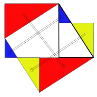 المثلث الأحمر يقايس المثلث البدئي. طول أطول ضلع من ضلعي الزاوية القائمة في المثلث الأصفر يساوي طول أصغر ضلع في المثلث البدئي، وزوايا هذين المثلثين متقايسة. طول أطول ضلع من ضلعي الزاوية القائمة في المثلث الأزرق يساوي فرق طولي ضلعي الزاوية القائمة للمثلث البدئي وزواياهما متقايسة أيضا.