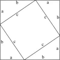 لنعتبر مثلثا قائم الزاوية حيث قياسات أضلاعه هي b ،a و c. نقوم بنسخ المثلث ثلاث مرات بحيث يشكل كل ضلع طوله a مستقيما مع ضلع طوله b لمثلث آخر. نحصل في الأخير على مربع طول ضلعه a+b، كما في الصورة.