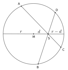 يُعبّر عن العلاقة رياضياً: لأي وترين في الدائرة متقاطعين في النقطة فإنَّ:[3]