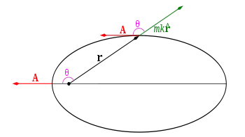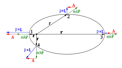مستوى الحركة عمودي علي متجه زخم زاوي L؛ هذا يكون موضحاً رياضياً متجه الجداء القياسي r·L = 0، بالمثل A·L = 0 لأن متجه A يقع في نفس المستوى.