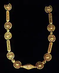- بِلَط مُثَقَّبة من الذهب، عُثر عليها بمعبد المسلة بجبيل ترجع إلى ما بين القرنين الثامن عشر والتاسع عشر قبل الميلاد.