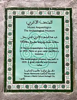 |CitationClass=تم تجاهله (مساعدة) - "معلومات عن متحف تطوان الأثري على موقع id.loc.gov". id.loc.gov. الوسيط