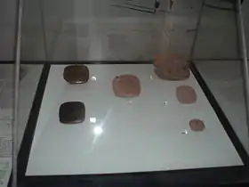 - - لوحان يحويان علامات رقمية ورموز تصويرية: عثر عليها في "تل براك" في المنطقة FS من العصر "السوري" المبكر الأول، ويبلغ ارتفاعها /4.1/سم وبعرض/2.7/سم.