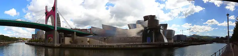 ![]() يطل متحف جوجنهايم بلباو على نهر نرفيون في قلب مدينة بلباو | |