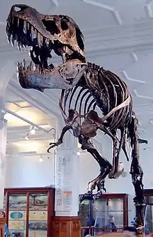 هيكل ديناصور " تيرانوصور ركس " في متحف مانشستر.
