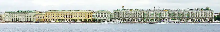 - - القصر الشتوي : مبني على الطراز الإيطالي وصمم بناه العام 1752 المهندس المعماري الإيطالي الشهير راستريللي المتوفى في العام ,1771 واستغرق بناء القصر عشر سنوات ثم افتتح كمقر للقيصر في فصل الشتاء إلى أن حوله الحكم الشيوعي بعد ثورة 1917 إلى متحف كبير.