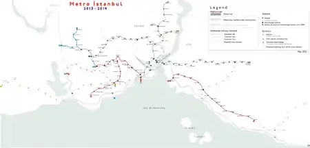 | غايريتيبي ↔ مطار إسطنبول الجديد | 37.2 كم (تحت الإنشاء) | 9 (تحت الإنشاء) | الخط تحت الإنشاء، الافتتاح: 2019. | |