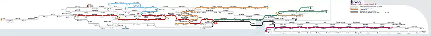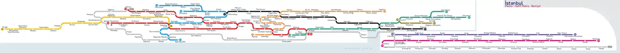 | بكركوي-إدو ↔ كيرازلي | 9.0 كم (تحت الإنشاء) | 7 (تحت الإنشاء) | الخط تحت الإنشاء، الافتتاح:2019. | |